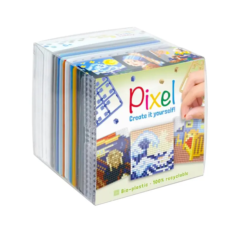 Pixelhobby Kubus – Wereld kunst – Pixelhobby is een creatieve hobby, waar je uren zoet mee kunt zijn. Het vergt enige concentratie maar je hoeft er niet veel bij na te denken, wat super ontspannend werkt! De pixels kunnen met de vingers of met een pincet op de basisplaat worden gedrukt. De pixels zitten direct vast, er is geen lijm of strijkijzer nodig.