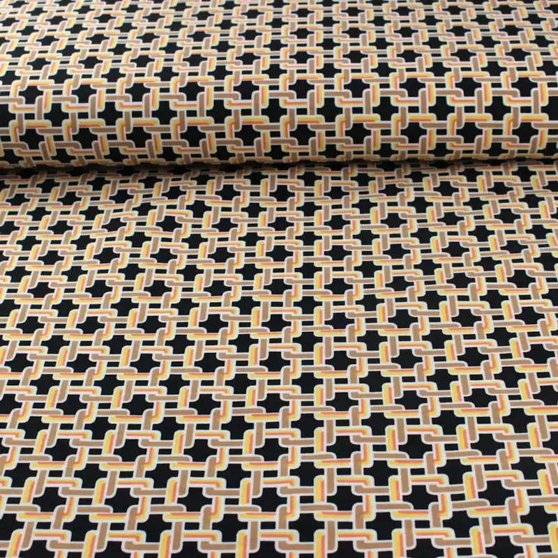 Bengaline is gemaakt van 77% viscose, 20% polyester en 3% elasthaan. Bengaline is een rekbare stof (lengte richting). Deze stof is erg leuk voor een rok, jurk of broek.