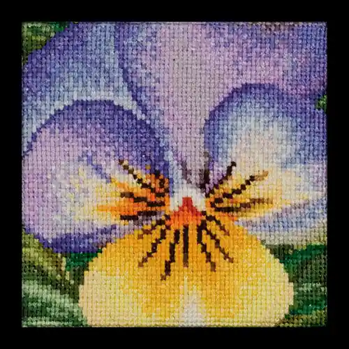 Beperkte Voorraad Viooltje lila-geel, Borduurpakket Thea Gouverneur