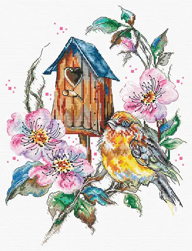 Het pakket wordt compleet geleverd inclusief de benodigde borduurstof, garens, patroon, naald en beschrijving.