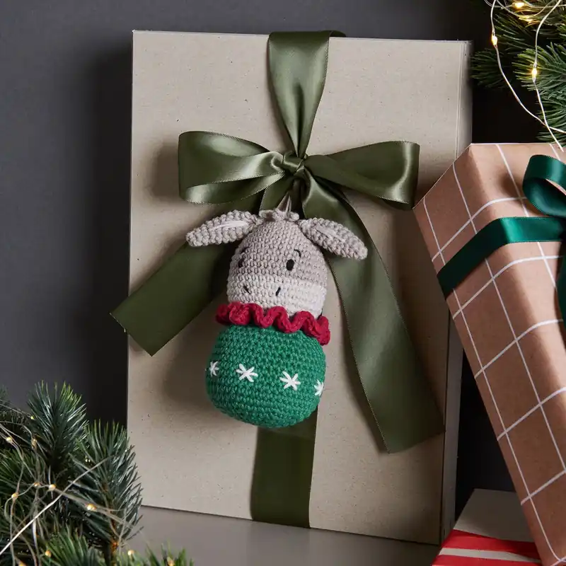 Haakpakket: Ricorumi Funny Christmas Donkey – Een lief ezeltje voor in de boom, aan een cadeau of aan de krans. Met zijn schattige kerstbal lijfje zorgt hij gelijk voor een feestelijke sfeer.