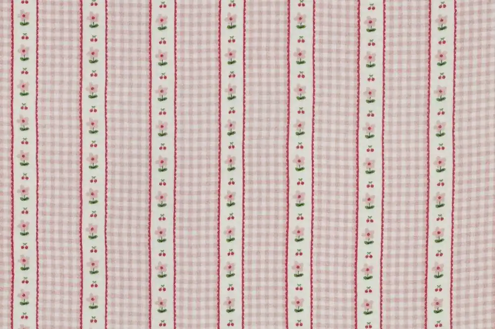 Mooie hydrofiel double gauze stof met een ruit en bloemetjesband.