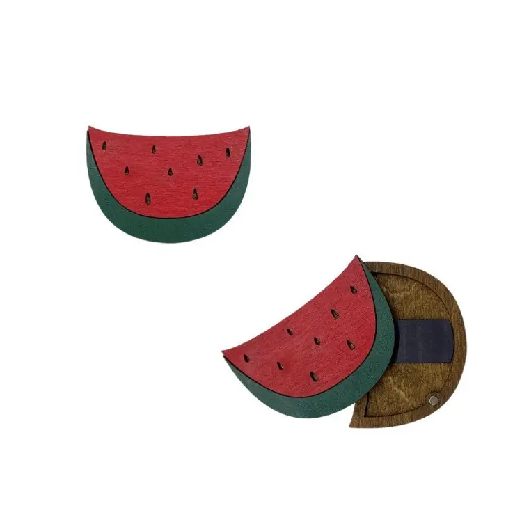 Handige houten magnetische naaldendoosje in de vorm van een watermeloen voor borduurnaalden van het merk Wizardi.
