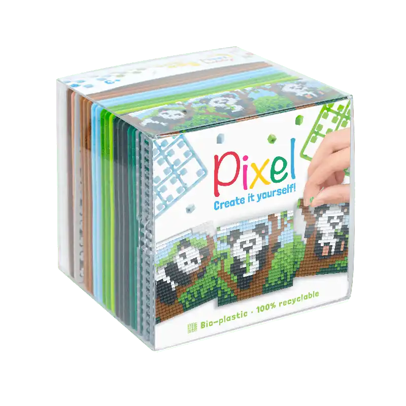 Pixelhobby Kubus Panda – Pixelhobby is een creatieve hobby, waar je uren zoet mee kunt zijn. Het vergt enige concentratie maar je hoeft er niet veel bij na te denken, wat super ontspannend werkt! De pixels kunnen met de vingers of met een pincet op de basisplaat worden gedrukt. De pixels zitten direct vast, er is geen lijm of strijkijzer nodig.