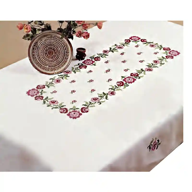 Het tafelkleed is voorbedrukt en wordt geborduurd met 3 draden. Verkrijgbaar in meerdere maten. Borduur dit mooie tafelkleed voor jezelf of geef het cadeau.