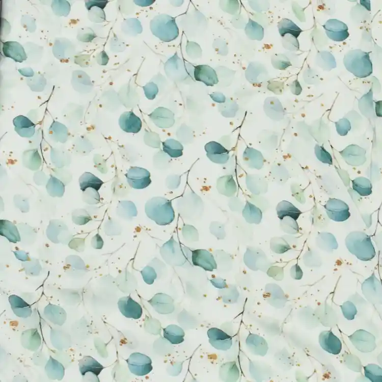 Viscose voile eucalyptus leaves, wit Direct Beschikbaar