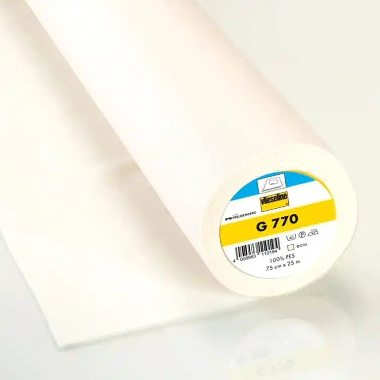 - De tussenvoering wordt – zoals alle voeringen van Vlieseline – altijd in de lengterichting geknipt en volgt daarbij de draadrichting van de stof.