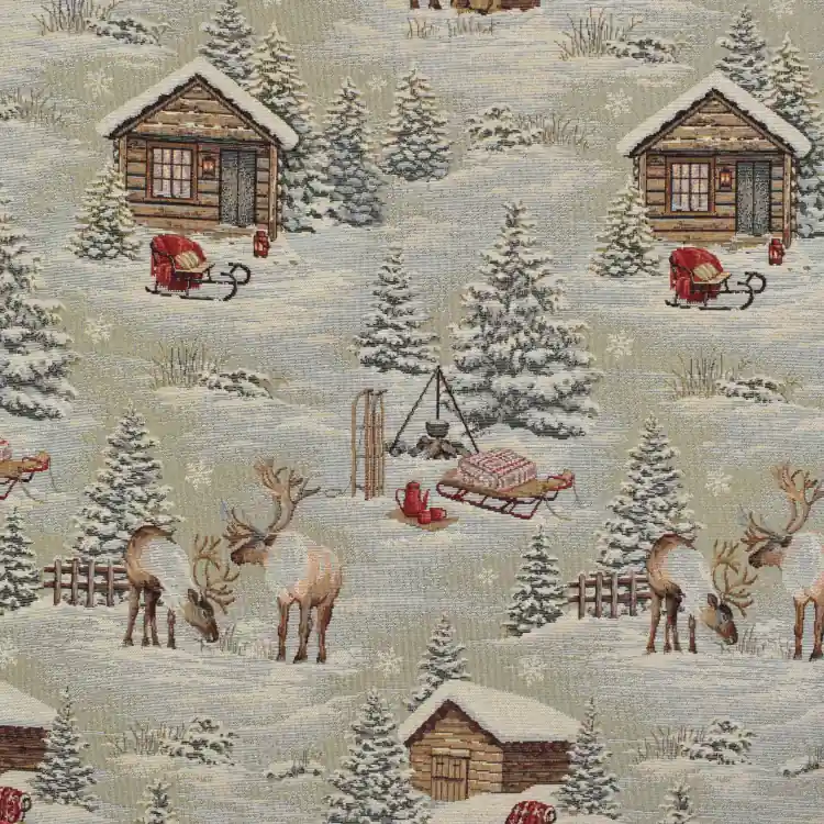 Deze hoogwaardige gobelin stof met een mooi wintermotief is bijzonder slijtvast en stevig.