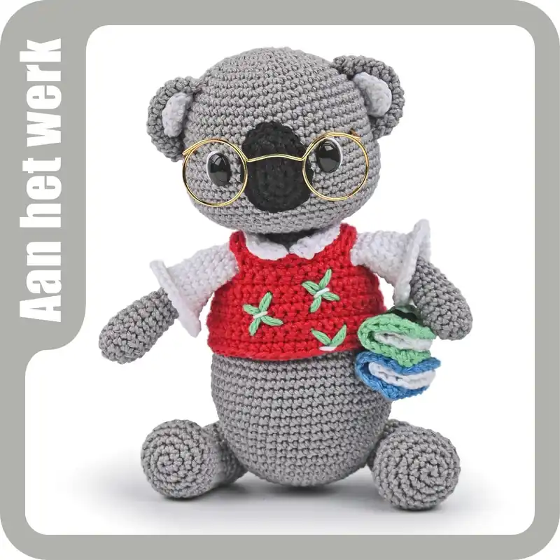 Garenpakket: Juf Karla Koala – Dit beroepenbeestje is gehaakt met Coral van Durable en wordt ongeveer 15 cm groot.