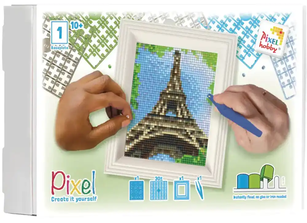 Pixelhobby Giftpack Eiffel Toren met lijst – Pixelhobby is een creatieve hobby, waar je uren zoet mee kunt zijn. Het vergt enige concentratie maar je hoeft er niet veel bij na te denken, wat super ontspannend werkt! De pixels kunnen met de vingers of met een pincet op de basisplaat worden gedrukt. De pixels zitten direct vast, er is geen lijm of strijkijzer nodig.